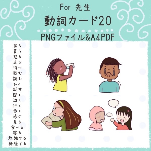動詞のイラストのPDFが20枚入っています。